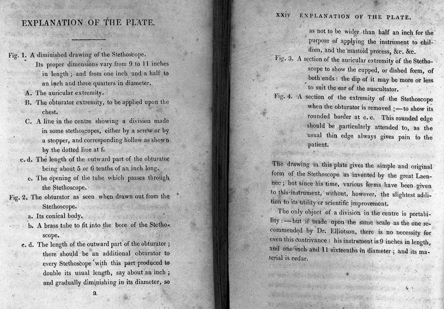 Credit: M0018706EC: Explanation of an illustration of a Laennec stethoscope, 1832. Source: Wellcome Collection.