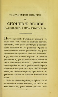 Credit: Tentamentum medicum inaugurale, de cholerae morbi, qualis praesertim in orientis India erat, causa proxima atque pathologia, inquisitonem complectens ... / eruditorum examini subjicit Johannes Fawcett. Source: Wellcome Collection.