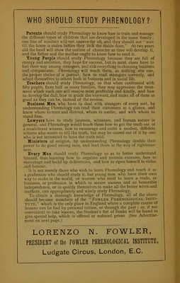 Credit: Fowler's New illustrated self-instructor in phrenology and physiology : with over one hundred engravings, together with the chart and character of ... as marked by ... / by Lorenzo N. Fowler. Source: Wellcome Collection.