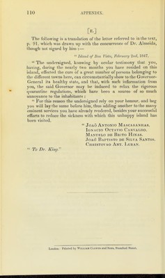 The fever at Boa Vista in 1845-6, unconnected with the visit of the "Eclair" to that island / by Gilbert King.