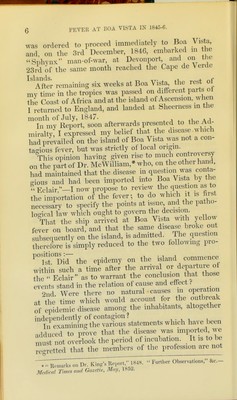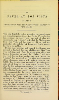 The fever at Boa Vista in 1845-6, unconnected with the visit of the "Eclair" to that island / by Gilbert King.