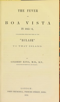 The fever at Boa Vista in 1845-6, unconnected with the visit of the "Eclair" to that island / by Gilbert King.