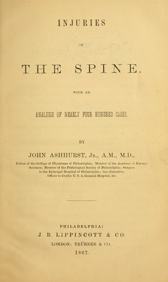 Injuries of the spine : with an analysis of nearly four hundred cases / by John Ashhurst.