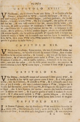 Credit: Mitsṿat nashim melumadah halakhot nidah ḥalah hadlaḳat ha-ner ṿe-derekh erets : precetti d'esser imparati dalle donne hebree ... / composto per Rabi' Biniamin d'Arodono in lingua todesca. E fù tradotto dalla detta lingua nella volgare per Rabi Giacob Alpron ... Ora in questa nova impressione, ridotto in maggior brevità ... ricorretto, et espurgato, aggiontovi molti avvertimenti importantissimi. Source: Wellcome Collection.