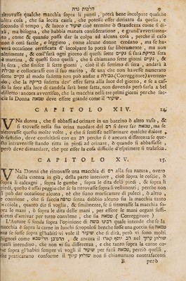 Credit: Mitsṿat nashim melumadah halakhot nidah ḥalah hadlaḳat ha-ner ṿe-derekh erets : precetti d'esser imparati dalle donne hebree ... / composto per Rabi' Biniamin d'Arodono in lingua todesca. E fù tradotto dalla detta lingua nella volgare per Rabi Giacob Alpron ... Ora in questa nova impressione, ridotto in maggior brevità ... ricorretto, et espurgato, aggiontovi molti avvertimenti importantissimi. Source: Wellcome Collection.