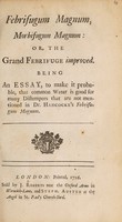 Febrifugum magnum, morbifugum magnum: or, the grand febrifuge improved. Being an essay, to make it probable, that common water is good for many distempers that are not mentioned on Dr. Hancocke's Febrifugum magnum. Public Domain Mark. Source: Wellcome Collection.