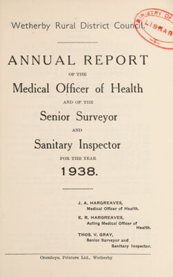 [Report 1938] / Medical Officer of Health, Wetherby R.D.C.