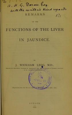 Remarks on the functions of the liver in jaundice / by J. Wickham Legg.