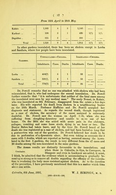 Cholera in Calcutta in 1894 and anti-choleraic inoculation.