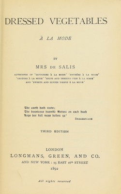 Credit: Dressed vegetables à la mode / [Harriet Anne De Salis]. Source: Wellcome Collection.