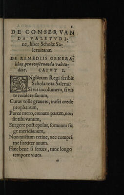 Credit: De conservanda bona valetudine, opusculum scholae Salernitanae, ad regem Angliae versibus conscriptum. / Cum Arnoldi Novicomensis ... enarrationibus ... Opera & studio Joannis Curionis, & Jacobi Crellii. Accessere De electione meliorum simplicium, ac specierum medicinalium, rhytmi M. Othonis Cremonensis. Item, S. Augustini concio, De vitanda ebrietate, carmine reddita [per Leonardum Ketnerum]. Source: Wellcome Collection.