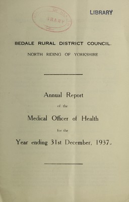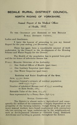 Credit: [Report 1937] / Medical Officer of Health, Bedale R.D.C. Source: Wellcome Collection.