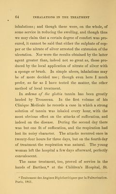 Inhalations in the treatment of diseases of the respiratory passages : particularly as effected by the use of atomized fluids / by J.M. Da Costa.
