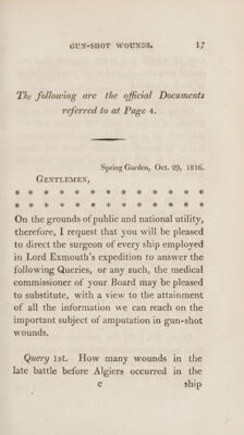 Credit: Some farther observations on the subject of the proper period for amputating in gun-shot wounds; accompanied by the official reports of the surgeons employed in His Majesty's ships and vessels at the late battle before Algiers / [A. Copland Hutchison]. Source: Wellcome Collection.