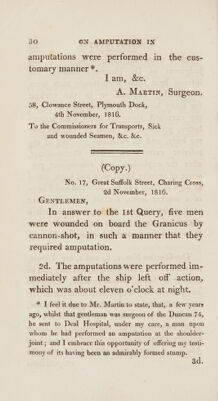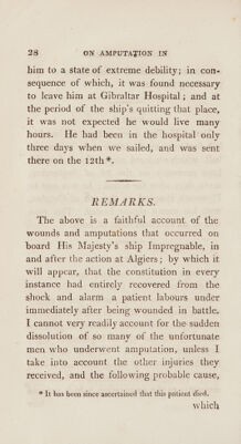Credit: Some farther observations on the subject of the proper period for amputating in gun-shot wounds; accompanied by the official reports of the surgeons employed in His Majesty's ships and vessels at the late battle before Algiers / [A. Copland Hutchison]. Source: Wellcome Collection.