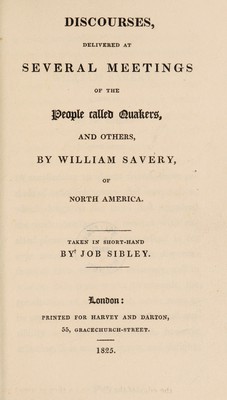 Discourses, delivered at several meetings of the people called Quakers, and others / by William Savery, of North America. Taken in short-hand by Job Sibley.