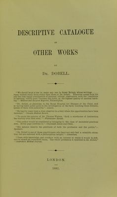 On the Mont Dore cure and the proper way to use it : in the rheumatic, gouty, scrofulous, syphilitic, tuberculous, dartrous, and other morbid constitutional states; also in asthma, consumption, bronchitis, emphysema, naso-pulmonary catarrh, and other affections of the throat, chest and mucous membranes / by Horace Dobell.