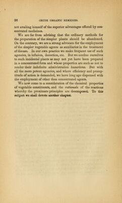 Concentrated organic medicines : being a practical exposition of the therapeutic properties and clinical employment of the combined proximate medicinal constituents of indigenous and foreign plants, to which is added a brief history of crude organic remedies, constituents of plants, concentrated medicines, officinal preparations, &c., &c. / by Grover Coe.
