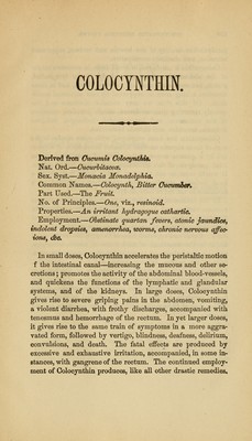 Credit: Concentrated organic medicines : being a practical exposition of the therapeutic properties and clinical employment of the combined proximate medicinal constituents of indigenous and foreign plants, to which is added a brief history of crude organic remedies, constituents of plants, concentrated medicines, officinal preparations, &c., &c. / by Grover Coe. Source: Wellcome Collection.