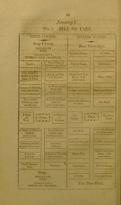 Credit: A complete system of cookery, on a plan entirely new, consisting of every thing requisite for cooks to know in the kitchen business : containing bills of fare for every day of the year, and directions how to dress each dish : being one year's work, at the Marquis of Buckingham's, from the 1st of January to the 31st of December, 1805 / by John Simpson. Source: Wellcome Collection.