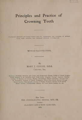 Principles and practice of crowning teeth : a practical, systematic and modern treatise upon the requirements and technique of artificial crown work, including some incidental reference to bridgework / With 459 illustrations. By Hart J. Goslee.