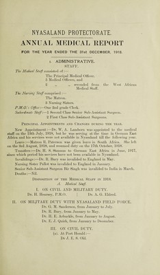 Annual medical report on the health and sanitary condition of the Nyasaland Protectorate for the year ended 31st December, 1918.