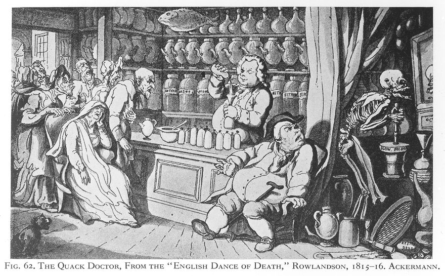 Credit: M0018516: "The quack doctor", Rowlandson. Source: Wellcome Collection.