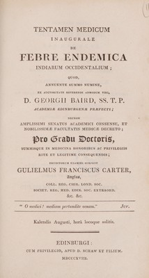 Tentamen medicum inaugurale de febre endemica Indiarum Occidentalium / [William Francis Carter].