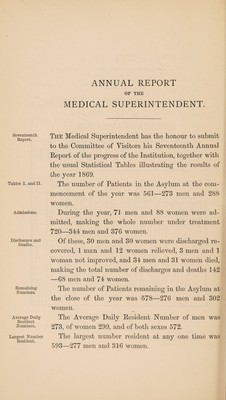 The seventeenth annual report of the Lincolnshire County Lunatic Asylum, at Bracebridge, near Lincoln.