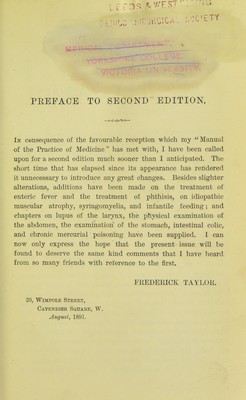 Credit: A manual of the practice of medicine / by Frederick Taylor. Source: Wellcome Collection.