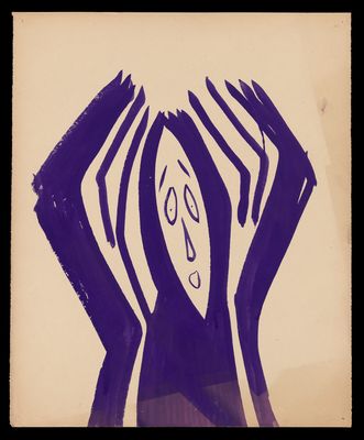 Credit: Purple face with raised hands. Source: Wellcome Collection.