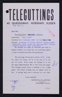 Credit: Telecuttings on miscellaneous topics. Source: Wellcome Collection.