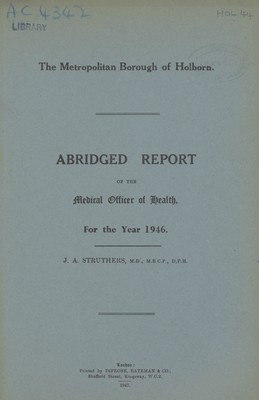 [Report of the Medical Officer of Health for Holborn Borough].