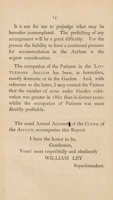 Superintendent's report for 1862 : with statistical tables / Littlemore Asylum.