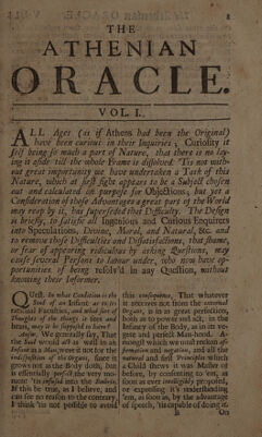 Credit: The Athenian oracle: being an entire collection of all the valuable questions and answers in the old Athenian Mercuries ... / By a member of the Athenian Society [S. Wesley]. Source: Wellcome Collection.