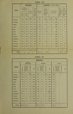 ![1919, Bright Sunshine. Percentage of. possible amount. Totals. Honrs. liq Difference from § Average of 2\ years] ? 1898-1918. Percentage of possible amount. Number of Sun-reeorded days. Brightest Days. Date. Hours. January 54-2 — 13*6 % 20-7 24 18th 7-3 % 85-9 February 69-4 — 25-2 24-8 16 8th 8-6 80-3 March 104-2 — 32-4 28-4 23 30th 10-6 83-4 10-8 162-2 — 29*0 39 3 28 ora 83-1 ' May 255-1 + 25-5 53-2 30 29th & 30th 14-0 87-5 June 228-7 + 1-2 46-6 29 10th & 15 th 14-2 87-1.86-6 July 139-7 —100-5 28-3 28 16 th 12-7 79-5 August 252-9 + 30-2 56-4 31 7th 14-0 94 September 190-8 + 3-9 50-5 29 9th &11th 11-8 90-7.91-5 October 180-2 + 62-9 54-5 27 3rd 10-4 90 November 71-6 — 12-1 26-8 18 12th 7-2 79-5 December 47-3 — 8-5 19-1 18 8th 6-0 76](https://iiif.wellcomecollection.org/image/b2893703x_0022.jp2/full/800%2C/0/default.jpg)