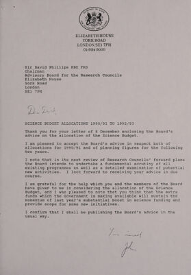 Allocations of the science budget 1990-93 : advice to the Secretary of State for Education and Science from the Advisory Board for the Research Councils.