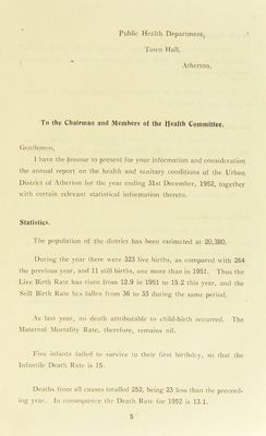 Credit: [Report 1952] / Medical Officer of Health, Atherton U.D.C. Source: Wellcome Collection.
