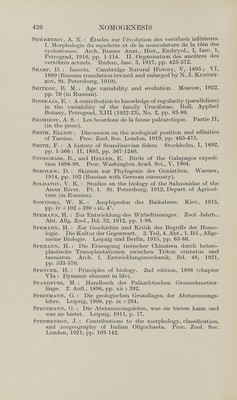 Nomogenesis, or, Evolution determined by law / by Leo S. Berg ; with an introduction by D'arcy Wentworth Thompson ; translated from the Russian by J.N. Rostovtsow.