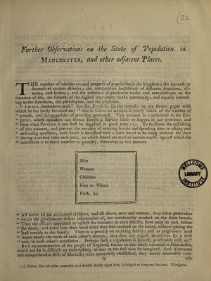 Credit: Further observations on the state of population in Manchester, etc / [Anon]. Source: Wellcome Collection.