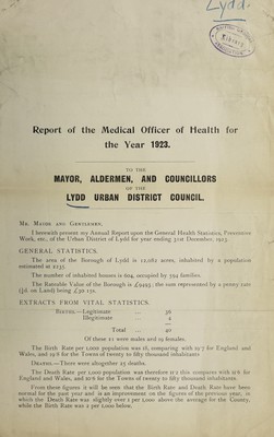 [Report 1923] / Medical Officer of Health, Lydd U.D.C. / Borough.