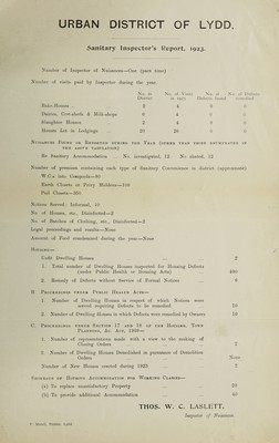 Credit: [Report 1923] / Medical Officer of Health, Lydd U.D.C. / Borough. Source: Wellcome Collection.
