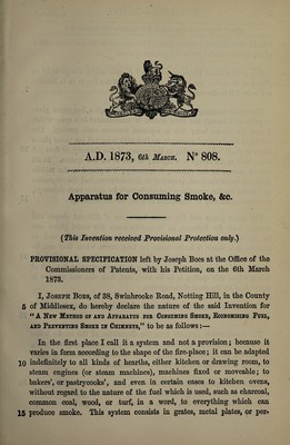 Credit: Specification of Joseph Boes : apparatus for consuming smoke, &c. Source: Wellcome Collection.