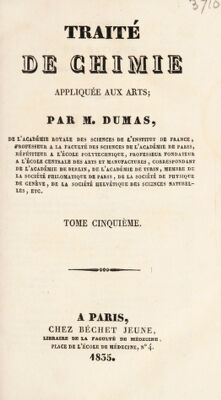 Credit: Traité de chimie, appliquée aux arts / Par m. Dumas. Source: Wellcome Collection.