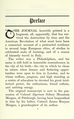 The journal of Dr. John Morgan of Philadelphia : from the city of Rome to the city of London, 1764 / together with a fragment of a journal, written at Rome, 1764, and a biographical sketch [by Julia Morgan Harding].
