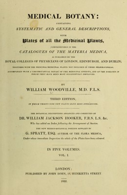 Medical botany : containing systematic and general descriptions, with plates of all the medicinal plants comprehended in the catalogues of the materia medica as published by the Royal Colleges of Physicians of London, Edinburgh, and Dublin ..., / by William Woodville.