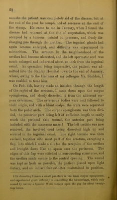 Credit: Ankylosis, hypertrophy, and extreme lateral curvature of the cervical and upper dorsal vertebrae following acute rheumatism, successfully treated by mechanical means ; Complete amputation of male genitals for recurrent epithelioma / under the care of Robert Jones. Source: Wellcome Collection.