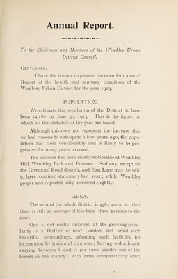 [Report of the Medical Officer of Health for Wembley UDC 1913].