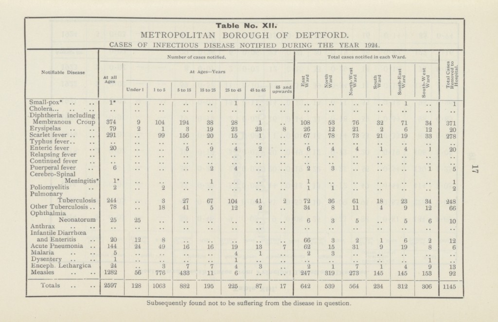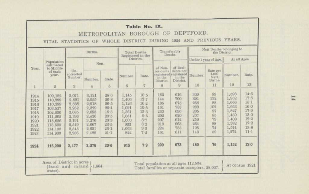 Credit: Annual report on the health of the Metropolitan Borough of Deptford. Source: Wellcome Collection.