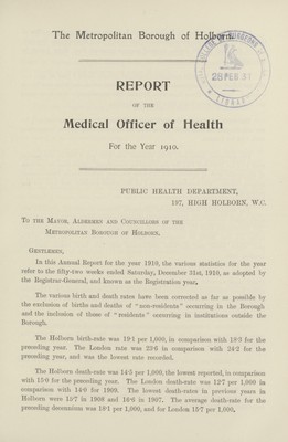 Credit: Report for the year 1910 of the Medical Officer of Health. Source: Wellcome Collection.
